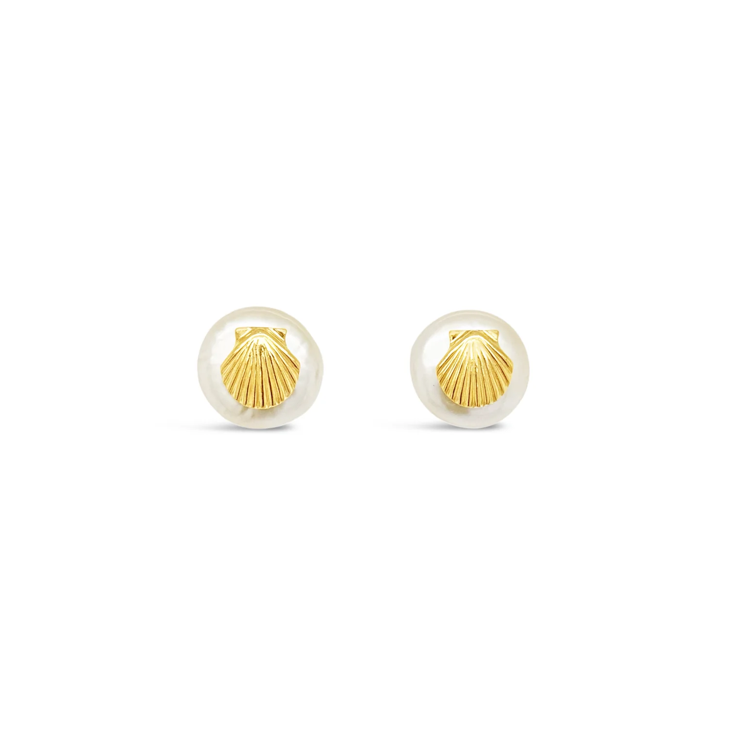 Add a touch of summer to your look with our handcrafted Luster Stud Earrings, available in 14K yellow gold and your choice of signature tiny scallop shell or petite sand dollar center. Posts and friction backs make these easy to wear and great for every day.